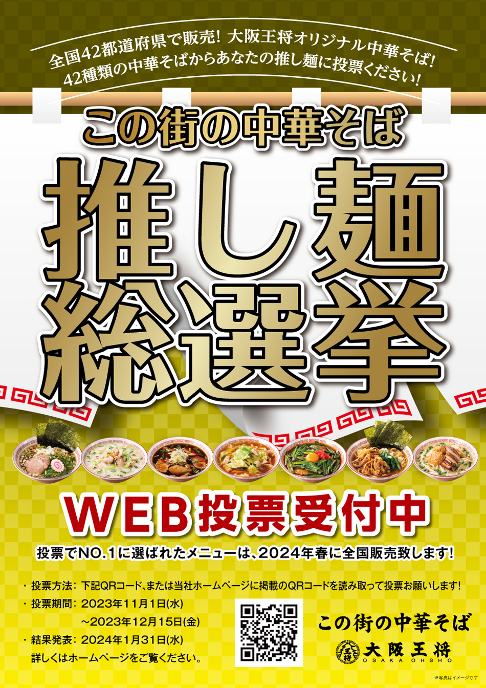 『この街の中華そば』の発売を記念して、『あなたが選ぶ!この街の推し麺総選挙』を2023年11月1日(水)より開催いたします。投票で1位に選ばれた中華そばは、2024年春に全国販売。美味しかった中華そばはもちろん、食べてみたい中華そばにも投票OK。皆様の1票をお待ちしております。